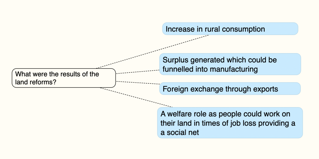 Land reforms were critical to kick start development in these economies. In the first half of the 20th century, majority of the population (nearly three fourths) was engaged in agriculture. It was an important driver for the economy and therefore an increase in yield was crucial. The markets however, prioritised tenancy profits which did not help maximise agricultural yield. This was because the land owners could increase rent as they fancied as the supply of land was limited. There was no incentive for either the owners or the tenants to invest in the land.